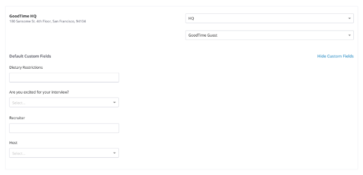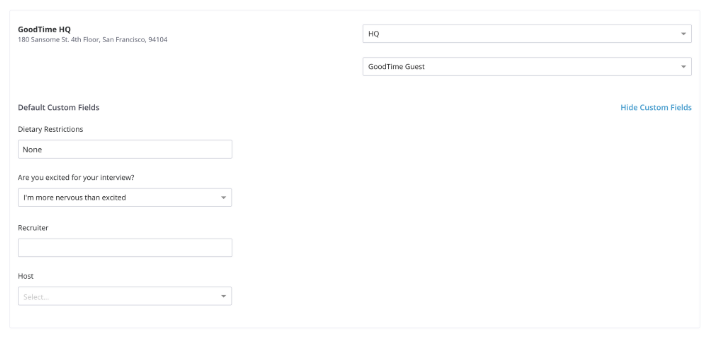 For instance, if your company hosts lunch meetings during all-day interviews and you wish to collect dietary restrictions or if you want to do a pulse-check on how nervous a candidate is about their pending interview: