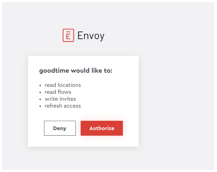 5. You will be redirected to Envoy and be asked if you want to give GoodTime only the following permissions: