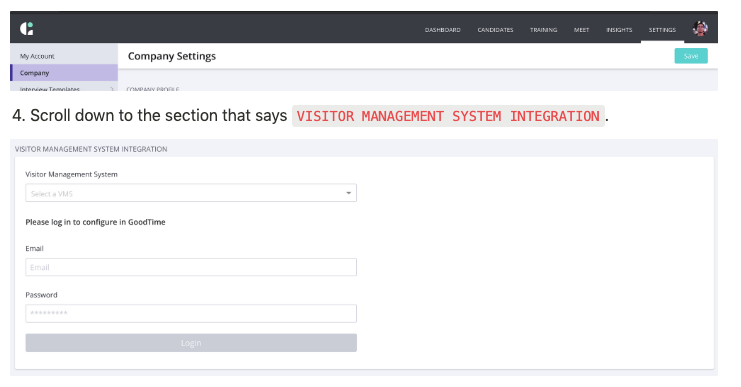 4. Scroll down to the section that says VISITOR MANAGEMENT SYSTEM INTEGRATION.