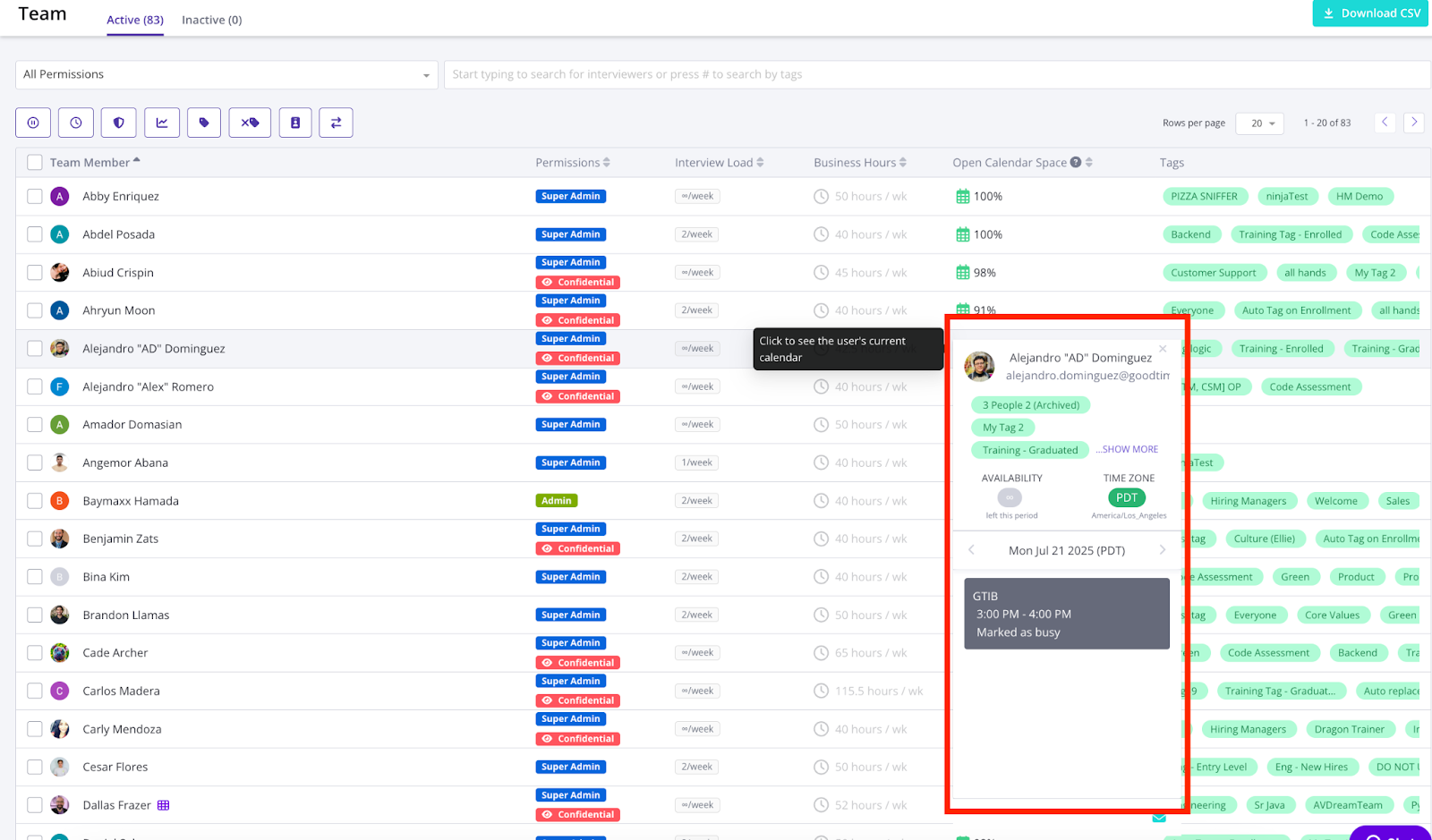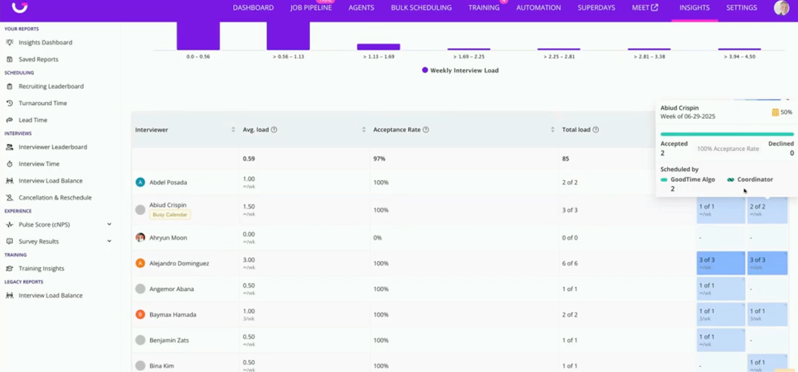 ⚖️ Interview Load Balancing Insight Report Building upon or recent Utilize Calendar Availability & Capacity Planning update, the new Interview Load Balance Insight Report brings these key insights together is a single-pane view that allows you to see on a week-over-week head-map view which of your interviewers are conducting the most interviewers and who might be serial decliners.