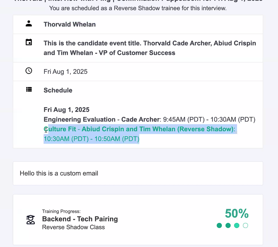 New Interviewer & Trainee Confirmation Email