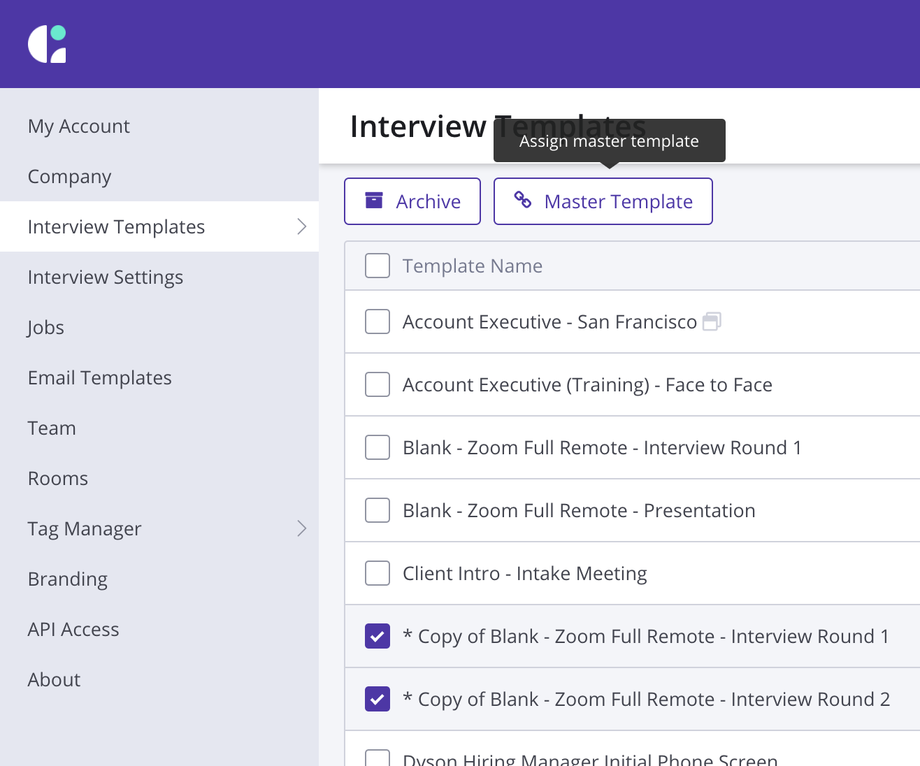 You don't need to individually relink your interview templates to your base template. You can do this in bulk by taking the following steps.