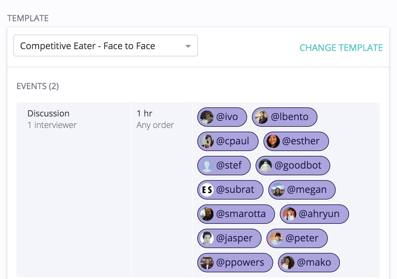 If the job and stage that your candidate is on is not linked to an Interview Template, you will see a pool of interviewers that includes the entire hiring team for this job (pulled from your ATS):