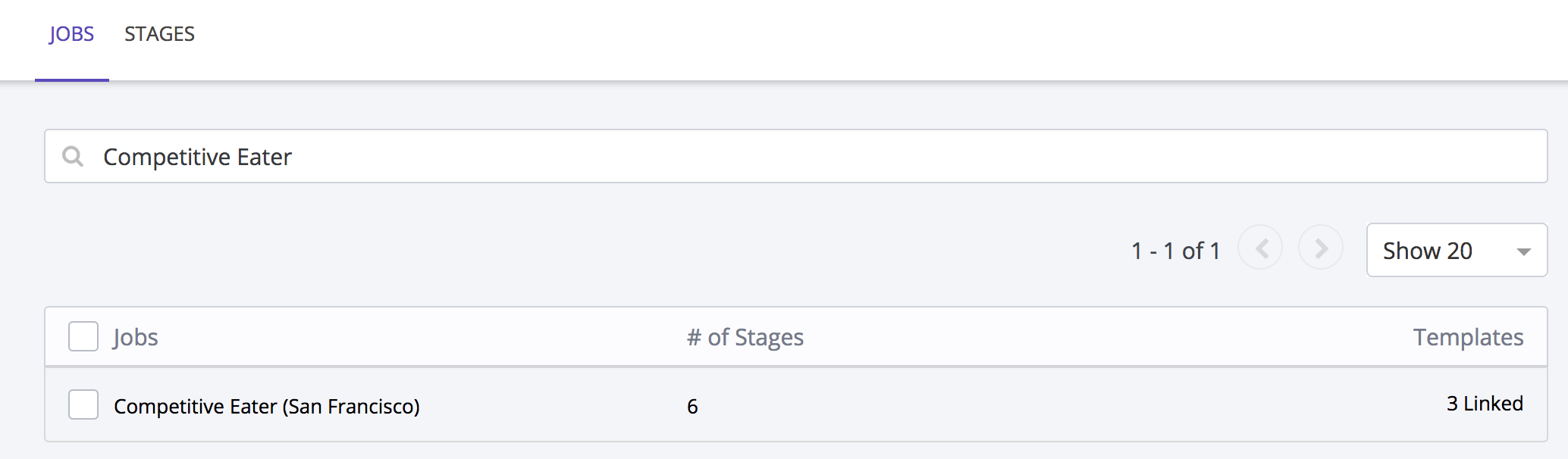 a. Navigate to Settings>Jobs. Find the job that you wish to link to an Interview Template and click into the row.