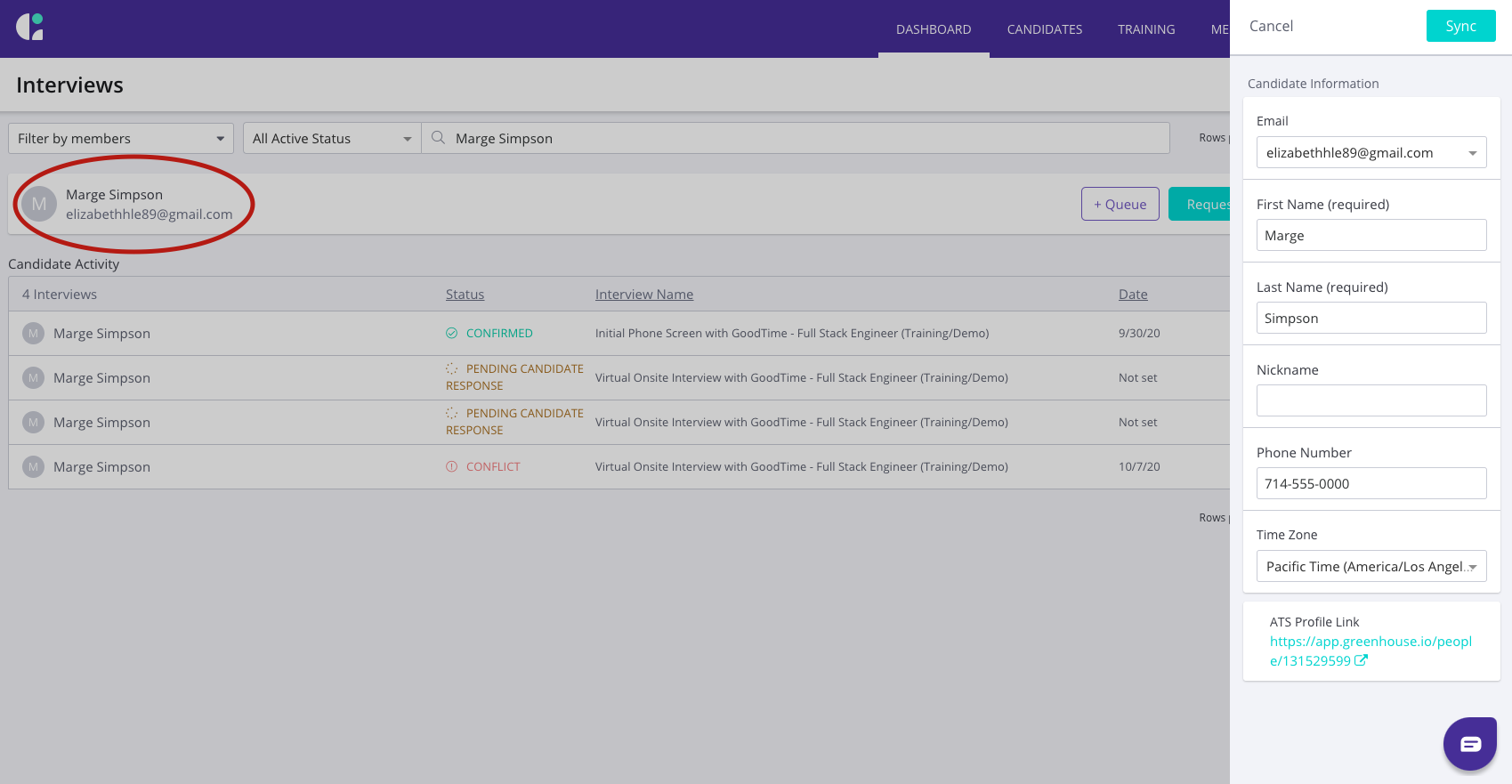 A: The system captures the time zone that the candidate uses when they submit their availability via the Candidate Flow. This information can be added or amended manually in the GoodTime Dashboard (see below).