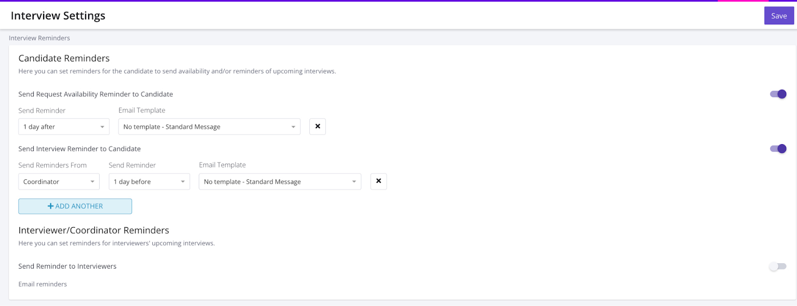 Custom Candidate Reminders: Customers can now create email templates to send custom candidate reminders. Changes can be made at the interview template level or under 'interview settings.' If a custom email template is not selected, GT will default to the standard automated message (no configuration needed).![]() |