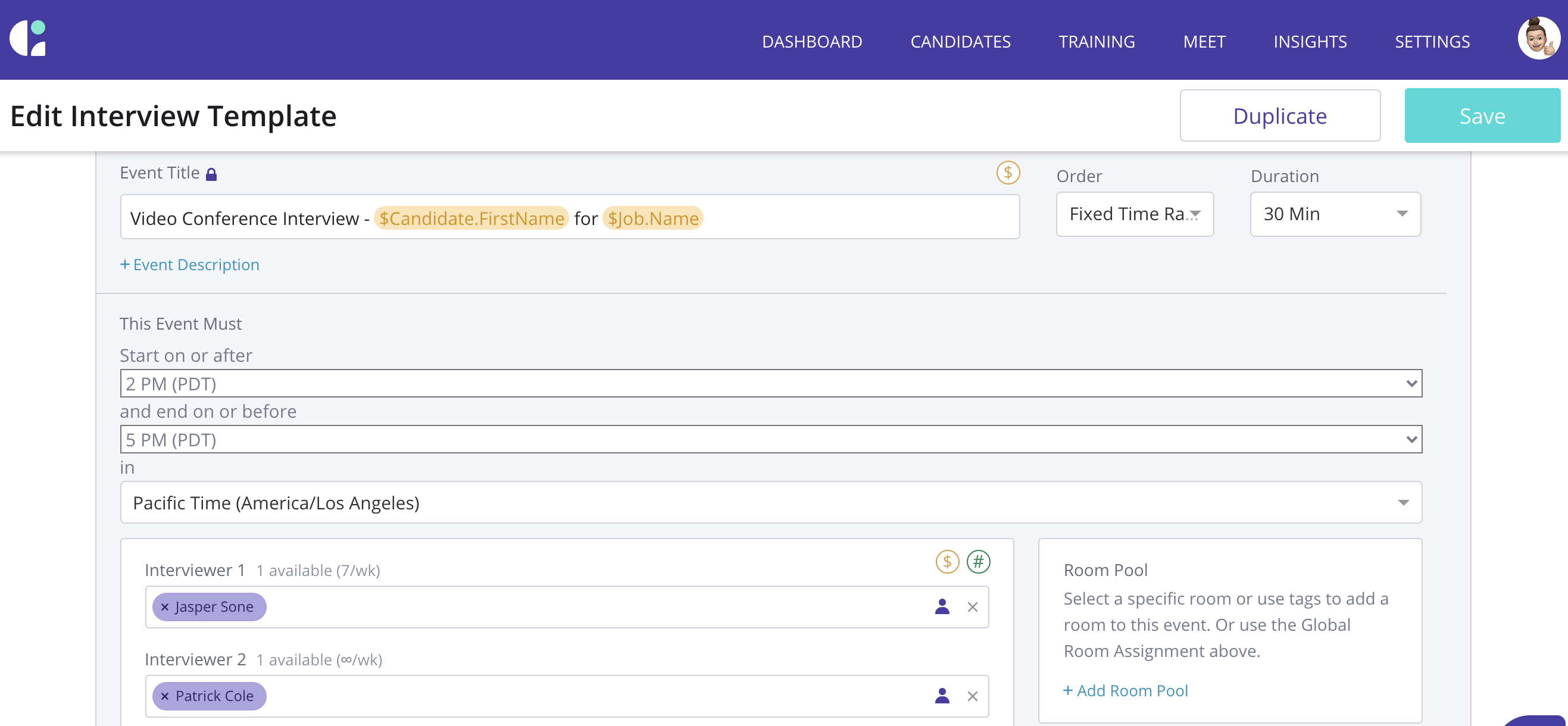 Interview Templates - Fixed Time Range