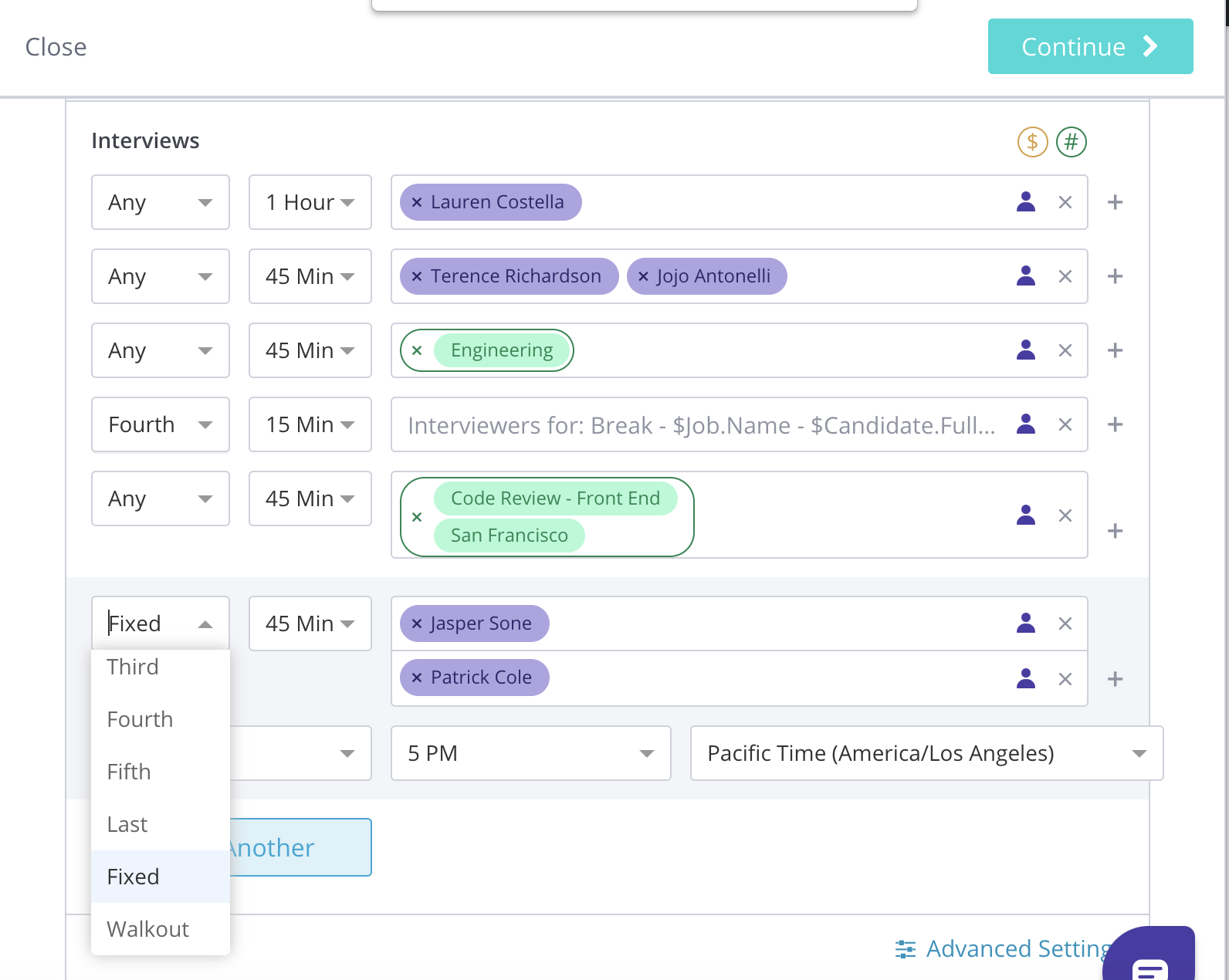 Sometimes your interviewers have very limited availability so you'll need to schedule them in specific time slots. GoodTime has a Fixed Time Range feature to schedule the interviewer in a certain time slot. This can be changed while scheduling or within an interview template.