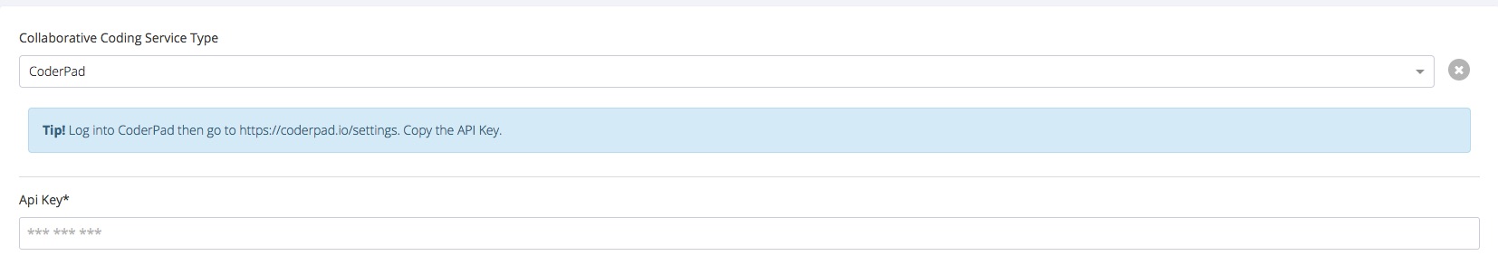 5. Select “CoderPad” as the Collaborative Coding Service type