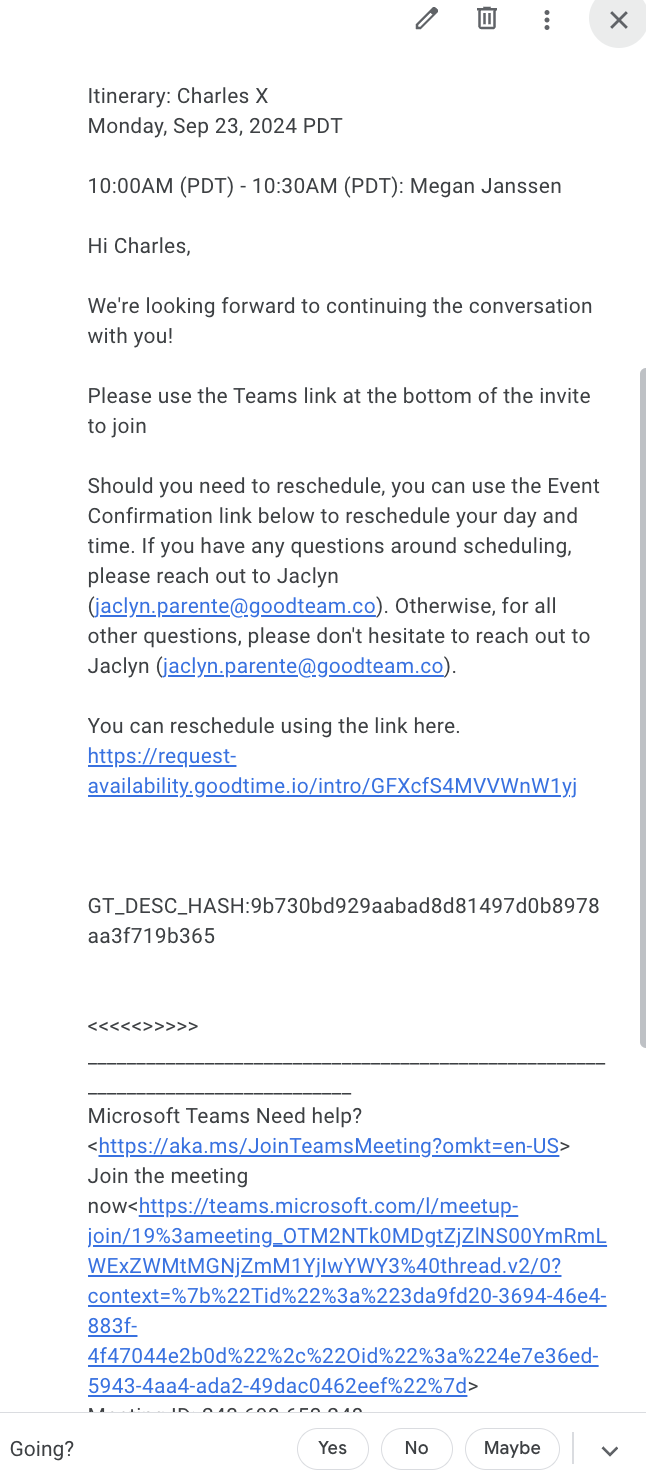- Question: Can Microsoft Team link be hyperlinked for the Interviewer invite?