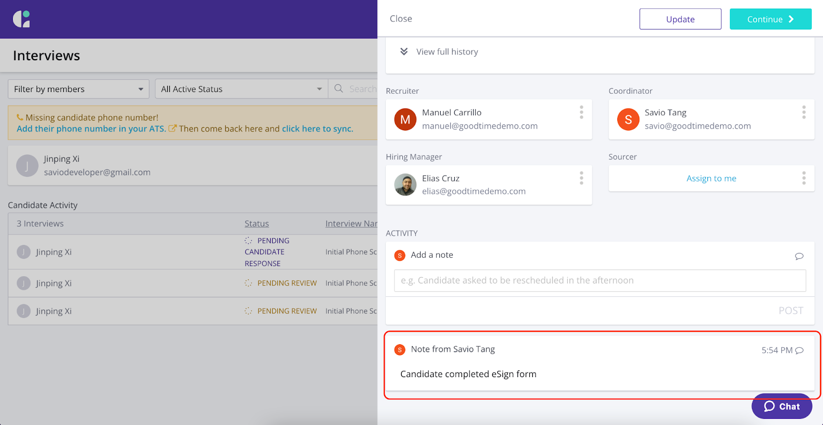 - Be informed whether the candidate has signed the Docusign PowerForm
