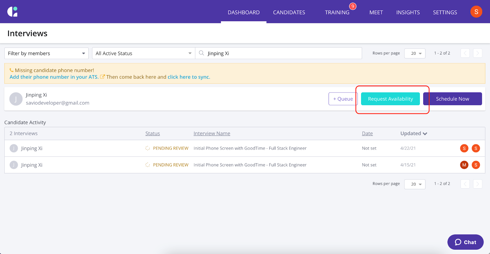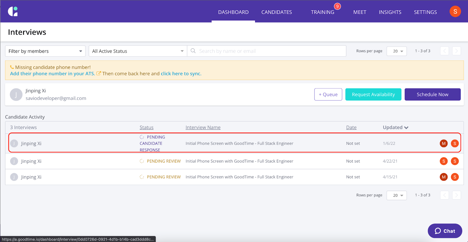 To check if a candidate has signed the PowerForm, click on the relevant interview from GoodTime Dashboard: