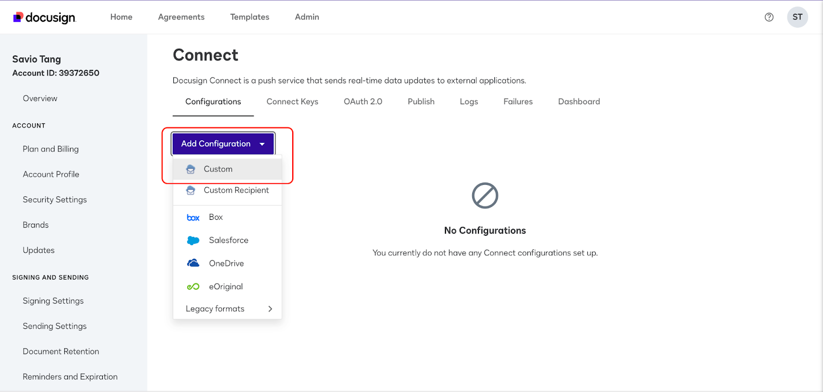 - You must have the admin role access in your company’s Docusign account